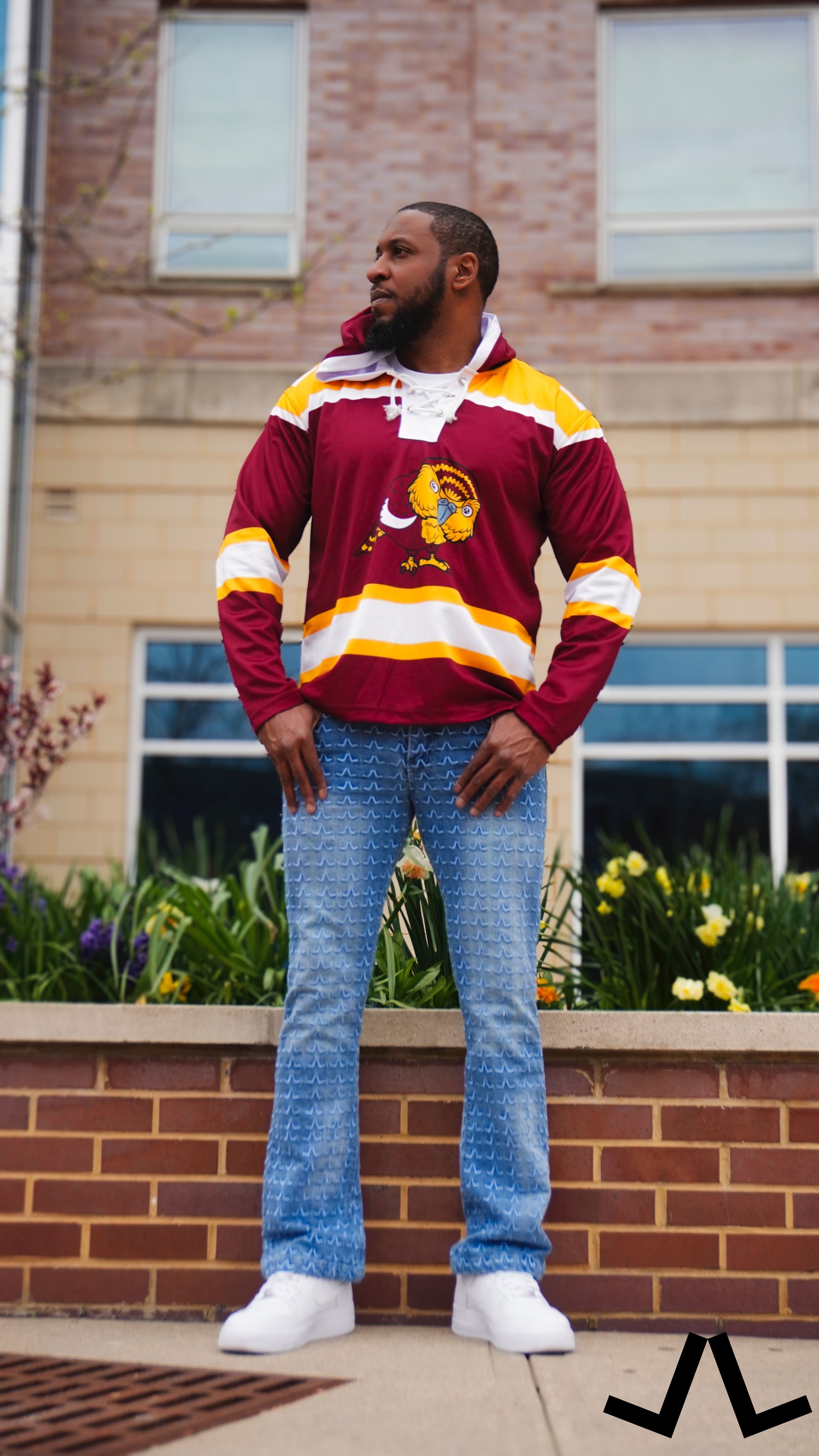 Burgundy yellow and white hoodie/ shirt rugby style